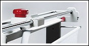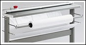 | Beide Modelle können optional (gegen Aufpreis) mit einem praktischen Rollenhalter für Papierrollen geliefert werden. | Der Sicherheits-Schneidkopf dieser Rollenschneider ist mit einem selbstschärfenden Rundmesser ausgestattet. | Die Papierabfälle beim Schneiden fallen in eine praktische Auffangwanne unter dem Schneidetisch. |